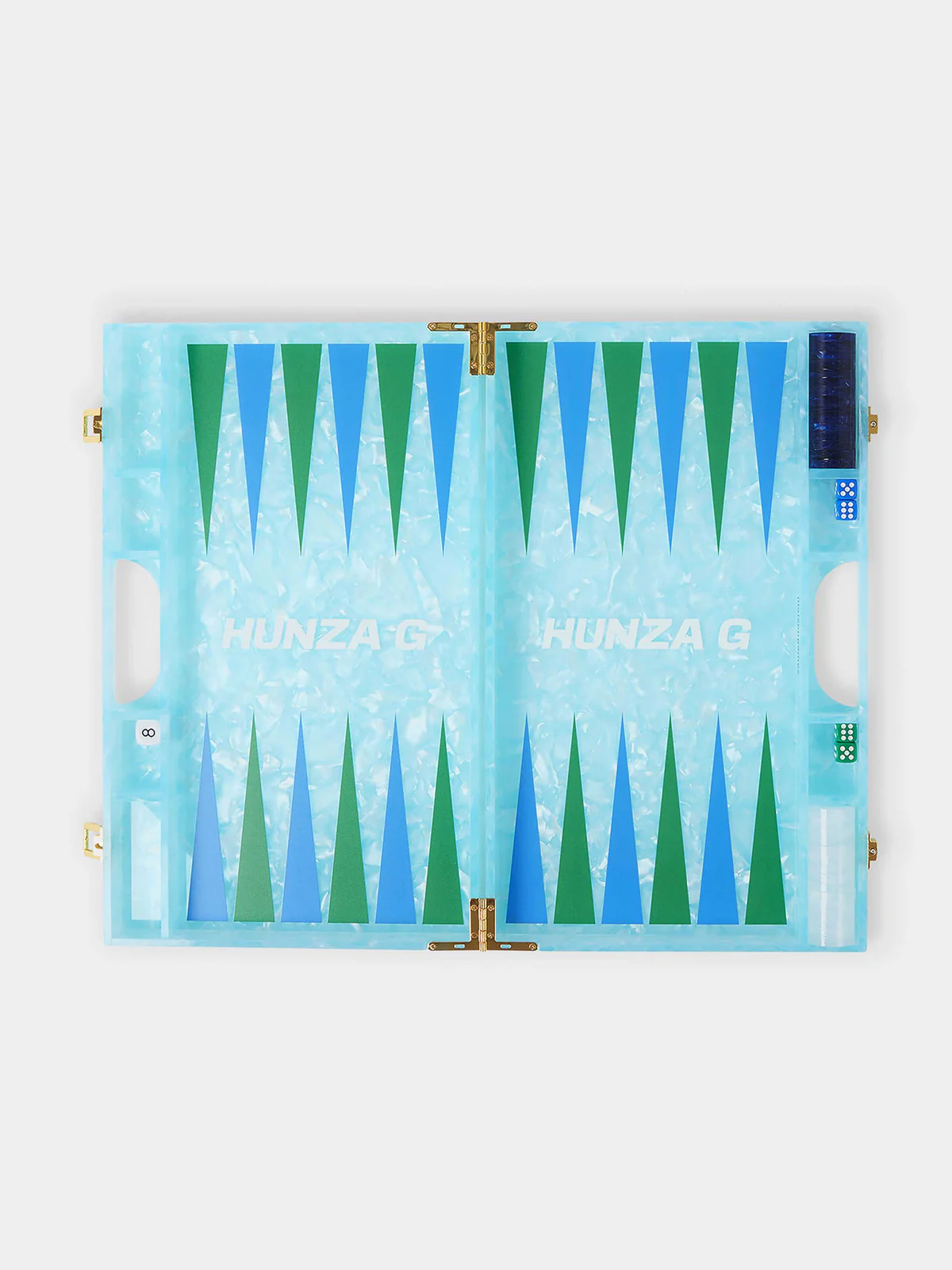 Exclusive Maison Games x Hunza G marble acrylic backgammon set. Perfect for entertaining this summer.